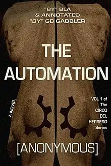 The Automation is an indie, mythpunk novel by an anonymous author using the dual pen names B.L.A. and G.B. Gabbler, about the god Vulcan's Automata which function off their human Master's souls.[1][2] Gabbler is known as the "Editor" and annotates the story, as if it was just a work of literature, through footnotes. B.L.A. is the "Narrator" and tells the fantastical story as if it were true.[3] The Automation is the first volume in a series called the Circo del Herrero Series.