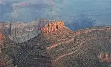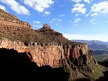 The Battleship is a 5,850-foot (1,780 m)-elevation summit located in central Grand Canyon, in Coconino County of northern Arizona, United States. The ridgeline, Battleship landform forms part of the western border of Garden Creek Canyon, which contains the Bright Angel Trail down to the Colorado River, and across it to Phantom Ranch. The east border of Garden Creek Canyon is the South Rim, with the overlooks of Grandeur Point and Yavapai Point. The Battleship is 1.5 miles (2.4 km) northwest of Yavapai Point, 1.5 miles due-north of Grand Canyon Village, and roughly 2.0 miles (3.2 km) southwest of the Colorado River.