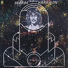 The North American and British versions of the album were released with different covers.[59] In the United States and Canada, the front and back cover had small black-and-white pictures of Harrison against an image of the cosmos;[34] Roy Kohara of Capitol was responsible for art design, as he had been for Extra Texture and the Lennon and Starr compilations,[33] while the illustrations were the work of Michael Bryan.[85] Rodriguez describes this choice of sleeve as "bizarre" and notes the use of an outdated, "rather dour-looking" image of Harrison.[59]