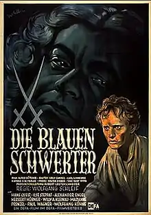 The Blue Swords (German: Die blauen Schwerter) is a 1949 East German historical drama film directed by Wolfgang Schleif and starring Hans Quest, Ilse Steppat and Alexander Engel.[1] It sold more than 3,299,432 tickets.[2] The film portrays the life of Johann Friedrich Böttger, an alchemist of the early eighteenth century who was held prisoner by the Elector of Saxony in order to discover the secret of gold production. Failing to accomplish this, which he knows to be impossible, he instead works to develop porcelain. The title refers to the symbol of Meissen, a pair of crossed swords. His story had previously been turned into a 1935 film The King's Prisoner, released during the Nazi era.