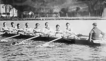 The Cambridge crew weighed an average of 12 st 11.75 lb (81.3 kg), 4.25 pounds (1.9 kg) per rower more than their opponents. Oxford's crew contained five participants with Boat Race experience, while Cambridge saw four of the 1920 crew return.[9] Five of the participants were silver medallists in the men's eight at the 1920 Summer Olympics: Oxford's Sebastian Earl, Walter James, Richard Lucas and Guy Oliver Nickalls, and Cambridge's John Campbell.[10] Two rowers were registered as non-British, Oxford's Francis Bacon Lothrop was American while Cambridge's Campbell hailed from Australia.[11]