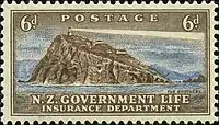 The Brothers lighthouse featured on one of the 1947 New Zealand Government Life Insurance Department lighthouse series postage stamps.