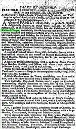 A Genteel family house in perfect repair delightfully situated at Hemel Hempstead late the residence of Mr Richard Ginger containing four rooms on each floor with numerous attached and detached offices of every description. Double coach house and stabling for six horses, three kitchen gardens walled and planted with prime fruit trees. A handsome sheet of water, fine trout streams with ornamental bridges and waterfalls, extensive pleasure grounds, elegant sloping lawns, plantations and shrubberies beautifully disposed with a quantity of rich meadow land adjoining, containing together upwards of thirty acres.[4]