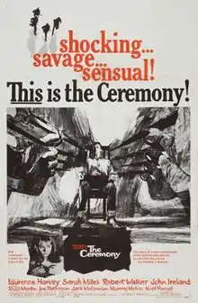 The Ceremony is a 1963 American crime film directed by Laurence Harvey and written by Ben Barzman. The film stars Laurence Harvey, Sarah Miles, Robert Walker Jr., John Ireland, Ross Martin, Lee Patterson, Jack MacGowran, Murray Melvin and Noel Purcell. The film was released on December 18, 1963, by United Artists.[1][2]