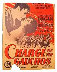 The Charge of the Gauchos (Argentine title: Una nueva y gloriosa nación) is a 1928 American-Argentine silent historical film directed by Albert H. Kelley and starring Francis X. Bushman, Jacqueline Logan, and Guido Trento. Bushman plays Manuel Belgrano, one of the leaders of the 1810 May Revolution. The film's Spanish title refers to a line from the Argentine national anthem. It was made as a patriotic endeavor designed to boost the small Argentine film industry, but with enough action and romance to appeal to international audiences particularly in the UK and the United States. The film was also released under the title The Beautiful Spy.[1]