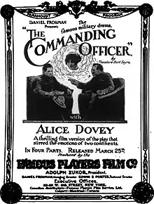 The Commanding Officer is a 1915 American silent drama film directed by Allan Dwan that was based upon a play by Theodore Burt. The film stars Alice Dovey, Donald Crisp, Marshall Neilan, Douglas Gerrard, Ethel Phillips, Russell Bassett, and Bob Emmons. The film was released on March 25, 1915, by Paramount Pictures.[1][2]