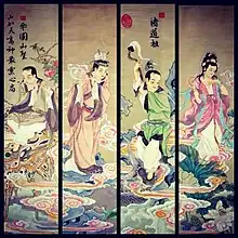 ![]() Painting of The Four Immortals. From left to right: Tản Viên Sơn Thánh, Phù Đổng Thiên Vương, Chử Đạo Tổ and Liễu Hạnh Công Chúa | |