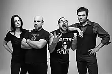 Formed in 1996 by Damien Paris, Andrew Totolos and Tim Kent,[1] The Giraffes are an active hard rock band from New York City. In 2001 Singer Aaron Lazar joined the band and was with them till 2011, until he took a three years hiatus.[2] In that time one record was released (Tales of the Black Whistle.) In 2014 singer Aaron Lazar rejoined the band and released the EP Usury. The current line-up consists of singer Aaron Lazar, guitarist Damien Paris, drummer Andrew Totolos, and bassist Hannah Moorhead. Their seventh full-length album, Flower of the Cosmos, was released in 2019 by Silver Sleeve and Rough Trade.[3] The album was recorded at Studio G in Brooklyn and produced by Tony Maimone and Francisco Botero.[4]