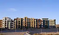 The Gramercy has 160 apartment units. A courtyard surrounds the various businesses located on the ground-floor, which includes restaurants and a fitness center. At the end of 2016, the last of the remaining office space was being prepared for incoming tenants.[30] In April 2017, the two commercial buildings were sold for $61.75 million to two real estate firms, Koll Company and Estein USA, based respectively in California and Florida.[25] The remainder of The Gramercy – including the apartment buildings and 12.6 acres of vacant property and parking lots – was sold to California-based developer Lyon Living in May 2018, for $45.75 million. The apartment units accounted for $37 million of the sale price.[31] In September 2020, Lyon Living announced plans for a six-story apartment building with 294 units, to be built on the former land of the imploded tower as well as adjacent property.[32] Construction on the apartment building, known as The Highline, began in November 2021 and is expected to conclude two years later.[33][34][35]
