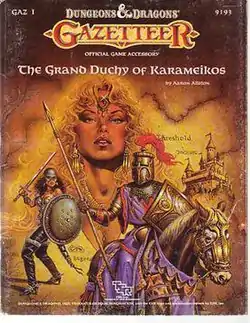The Grand Duchy of Karameikos (product code GAZ1) is an accessory for the Basic Set edition for the Dungeons & Dragons fantasy role-playing game. The book was written by Aaron Allston, and was published in 1987. Cover art is by Clyde Caldwell, with interior illustrations by Stephen Fabian.