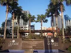 The Grande at Santa Fe Place is a high-rise residential building in San Diego, California, United States composed of two towers of equal height. The 39-story towers have a height of 420 feet (130 m) and are a prominent fixture in San Diego's skyline. Located in the Core district of Downtown San Diego, The Grande at Santa Fe Place was designed by the architect firm Perkins & Company Architecture and Urban Design Inc. The towers are currently tied with Vantage Pointe Condominium as the tenth-tallest buildings in San Diego.