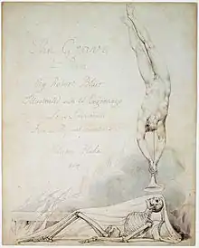 "The Grave" is a blank verse poem by the Scottish poet Robert Blair.[2] It is the work for which he is primarily renowned.[2][3] According to Blair, in a letter he wrote to Philip Doddridge, the greater part of the poem was composed before he became a minister.[2] Edinburgh editor and publisher John Johnstone stated that it was composed whilst Blair was still a student, although "probably corrected and amplified by his more matured judgement."[3] The poem, 767 lines long, is an exemplar of what became known as the school of graveyard poetry.[4]