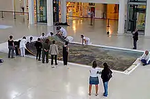 The restored work was installed on 14 September 2010 in the Josep Irla Auditorium of the Old Hospital of Santa Caterina, Girona, where it had been moved directly from the restoration centre in Valldoreix. The work was transported in a truck and unloaded by a team of eight handlers under the supervision of a team of restorers and other professionals.