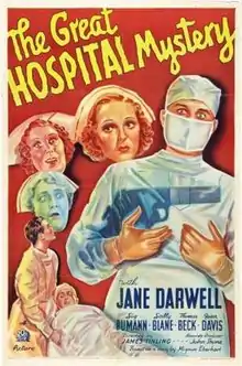 The Great Hospital Mystery is a 1937 American crime film directed by James Tinling and written by Bess Meredyth, William M. Conselman and Jerome Cady. The film stars Jane Darwell, Sig Ruman, Sally Blane, Thomas Beck, Joan Davis and William Demarest. It was released on May 14, 1937, by 20th Century Fox.[1][2][3]