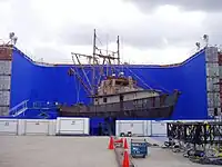 A ship located on a hydraulic gimbal used for filming