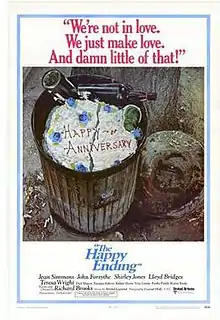The Happy Ending is a 1969 drama film written and directed by Richard Brooks, which tells the story of a repressed housewife who longs for liberation from her husband and daughter. It stars Jean Simmons (who received an Oscar nomination), John Forsythe, Shirley Jones, Lloyd Bridges and Teresa Wright.