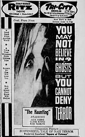 - 1 2 ""Dying' Can Be A Living in Movies". The Haunting". Pressbook. Metro-Goldwyn-Mayer, 1963, p. 2. via Turner Classic Movies. Retrieved 7 October 2012.