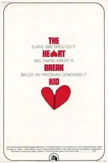 The Heartbreak Kid is a 1972 American romantic black comedy film directed by Elaine May and written by Neil Simon, starring Charles Grodin, Cybill Shepherd, Jeannie Berlin, Audra Lindley, Eddie Albert, and Doris Roberts.[2] It is based on the short story "A Change of Plan", written by Bruce Jay Friedman and first published in Esquire in 1966.[3]
