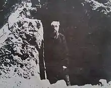 His cave was boarded up and partially destroyed when Queens Drive was built in 1894.[7]