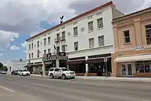 The Holland Hotel is a hotel in Alpine, Texas that has been operating since 1912.[1] The hotel was built by Mr. John R. Holland, a prominent cattleman at the time. According to Mr. Holland, Alpine needed a place where the travelers of the booming mining industry could stay the night. The hotel was finished during the mercury-mining boom, therefore becoming very successful in the community as both a business and a social and civic center. After Mr. Holland’s death, his son Clay took over the hotel. In 1928, Clay Holland commissioned the architects Trost and Trost and built a new building a few store fronts away from the original Holland Hotel. It was built, in the Spanish Colonial Revival style for $250,000.[2] Along with many of the Trost creations, The Holland Hotel was seen as a fairyland adorned with beautiful Spanish decorations and was eventually recognized as a Texas Historic Landmark in 1980.[3]