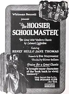 The Hoosier Schoolmaster is a 1924 American silent drama film directed by Oliver L. Sellers and starring Henry Hull, Jane Thomas, and Frank Dane.[1] It is an adaptation of the novel The Hoosier Schoolmaster by Edward Eggleston.[2] The film was remade as a post-Civil War talkie in 1935.