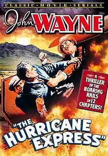 The Hurricane Express is a 1932 American Pre-Code 12-chapter Mascot Pictures film serial.[1] Written by Colbert Clark, Barney Sarecky, Wyndham Gittens, George Morgan, and J.P. McGowan, the serial was directed by Armand Schaeffer and J.P. McGowan and produced by Nat Levine. The Hurricane Express stars John Wayne as aircraft pilot Larry Baker. Wayne goes after a mystery villain named "The Wrecker", who was responsible for a train crash that killed Baker's father.[2]