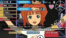 The player must organize an idol's daily schedule including what she will do in the morning, afternoon and evening.[9] There is a large amount of freedom in organizing the schedule, though each event may take up either one-third, two-thirds or an entire day of in-game time to complete.[3] The schedule choices include: changing an idol's costume or song, making appointments with reporters or stylists, taking a lesson, doing promotional work, taking an audition, or taking the day off.[3] The lessons are in the form of six minigames which serve to increase an idol's statistics in either vocal, dance or visual image.[9] Each lesson is timed, which varies between lessons, and the lesson's overall performance is ranked from bad, to normal, good and finally perfect. The player may also choose to do a hard lesson, which is more demanding and takes more in-game time. The promotional phase of the gameplay mainly deals with the player talking with the idol and doing jobs to further her publicity.[9] Like when greeting the idol before, the player is given multiple responses to choose from over the course of a conversation. Depending on which choice is made will affect how well or poorly the communication is received from bad, to normal, good and finally perfect communication, which results in either good or bad memories. The good memories are tallied in the heart on the heads-up display.[3]