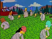 ![]() Various residents of Springfield being forced by the Movementarians cult into growing and harvesting lima beans. | |