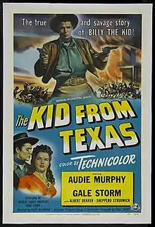The Kid from Texas is a 1950 American Western film that was Audie Murphy's first Technicolor Western and the first feature film on Murphy's Universal-International Pictures contract. It was directed by Kurt Neumann and featured Gale Storm and Albert Dekker.[1]