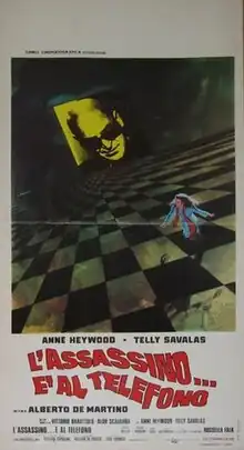 The Killer Is on the Phone (Italian: L'assassino... è al telefono) is a 1972 giallo film directed by Alberto De Martino. It was released in the U.S. in July, 1975.[3][4][5][6] The film is set in Bruges, Belgium, and stars Telly Savalas and Anne Heywood. The story follows an attractive actress who suffers from amnesia and paranoia triggered by a chance encounter with a professional assassin, who in turn begins to follow her with his knife.