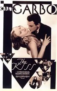 The Kiss is a 1929 American synchronized sound drama film directed by Jacques Feyder, starring Greta Garbo, Conrad Nagel, and Lew Ayres in his first feature film. The film has no audible dialogue but featured a synchronized musical score and sound effects. The soundtrack was recorded using the Western Electric Sound System sound-on-film process. The soundtrack was also transferred to discs for those theatres that were wired with sound-on-disc sound systems.
