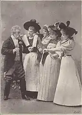 The actress Marie Dressler had her first starring role as Flo Honeydew in this production[8] which she performed for four years, two years of which were on tour.[9] The critic of The New York Times called Dressler, "...an utterly preposterous music hall performer" while another stated of her, "It was hardly a case of acting. Better call it a case of letting herself go... She seemed a big, overgrown girl and a thoroughly mischievous romp with the agility of a circus performer and the physical elasticity of a professional contortionist... Her comic resource was inexhaustible, her animal spirits irrepressible and her audacity approached the sublime."[6]