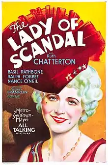 The Lady of Scandal is a 1930 American pre-Code romance-comedy-drama film directed by Sidney Franklin, based on the 1927 play The High Road by Frederick Lonsdale, and starring Ruth Chatterton, Basil Rathbone and Ralph Forbes. Its plot follows a British actress who becomes involved with a member of an aristocratic family, who try desperately to thwart the match. It also is known by the alternative title The High Road.[1]