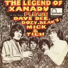 "The Legend of Xanadu" is a single by Dave Dee, Dozy, Beaky, Mick & Tich that reached number one in the UK Singles Chart in 1968[2] and was the group's biggest hit. It was written by songwriters Ken Howard and Alan Blaikley. As was the case with many of the group's recordings, it features novelty elements — a trumpet section and the distinctive sound of a whip cracking in the chorus. The musical accompaniment was directed by John Gregory. The single was certified gold in November 1968.[3]