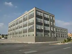 The building is a four-story, rectangular structure built of concrete on a raised concrete foundation.[5] Extensions were added to the east of the original structure, which altered the building's main entrance.[3] Some of the windows were filled in over the years, but large windows were placed in the building's fenestration during the 2009 renovation. A loading dock on the south side of the building was covered over at some point.