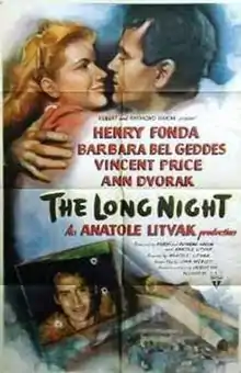 The Long Night is a 1947 American film noir crime-drama directed by Anatole Litvak and produced by RKO Pictures. It is a remake of Le jour se lève (1939) by Marcel Carné. The drama stars Henry Fonda, Barbara Bel Geddes, Vincent Price and Ann Dvorak. The title of the original French film is an idiom which translates roughly as "dawn is breaking".