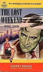 The Lost Weekend is Charles R. Jackson's first novel, published by Farrar & Rinehart in 1944. The story of a talented but alcoholic writer was praised for its powerful realism, closely reflecting the author’s own experience of alcoholism, from which he was temporarily cured. It served as the basis for the classic 1945 Oscar winning film adaptation.[1]