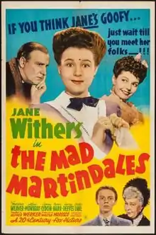 The Mad Martindales is a 1942 American comedy film directed by Alfred L. Werker and written by Francis Edward Faragoh. It is based on the 1939 play Not for Children by Wesley Towner. The film stars Jane Withers, Marjorie Weaver, Alan Mowbray, Jimmy Lydon, Gig Young, George Reeves and Charles Lane. The film was released on May 15, 1942, by 20th Century Fox.[1][2][3]