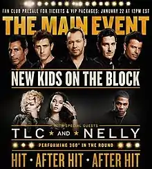 The Main Event was a co-headlining concert tour from American boy band New Kids on the Block with special guests TLC, and Nelly. The tour began on May 1, 2015, in Las Vegas, and finished on July 2, 2015, in Buffalo, New York. It included close to fifty dates across North America. It was the thirty-eighth ranked North American tour of 2015, grossing $26.1 million.[1]