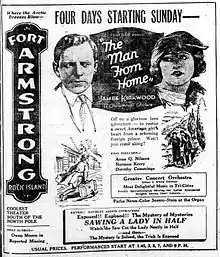 The Man From Home is a 1922 British drama film directed by George Fitzmaurice, adapted from a play of the same name by Booth Tarkington and Harry Leon Wilson. The story had been filmed before in 1914 by Cecil B. DeMille as The Man From Home. Alfred Hitchcock was credited as a title designer on the 1922 production.[1] The film survives in Netherlands Filmmuseum Amsterdam (EYE Institut).[2] It was shown publicly in September 2015, possibly for the first time since the 1920s, during the British Silent Film Festival at Leicester.[3]