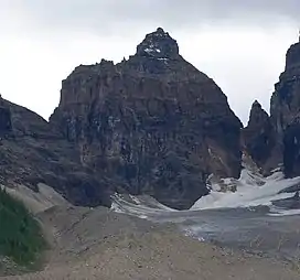 The Mitre is a 2,850-metre (9,350-foot) mountain summit located in the Lake Louise area of Banff National Park, in the Canadian Rockies of Alberta, Canada. Its nearest higher peak is Mount Lefroy, 1.0 km (0.62 mi) to the west.[1] Mount Aberdeen is 2.0 km (1.2 mi) to the north-northeast, Lefroy Glacier immediately north, Mitre Glacier southwest, and Paradise Valley to the southeast.