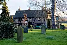 The Mug House is situated in the village of Claines, about three miles north of the city of Worcester. The exact location of the pub is near the junction where Claines Lane meets Cornmeadow Lane, just to the rear of Claines church.[4] The situation of the pub is such that one has to walk through, or very near, the graveyard of the church in order to access it. The pub is one of only two pubs in England to be situated on consecrated ground.[5]