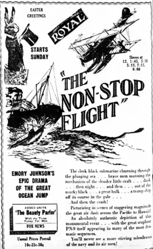 - ↑ "PN-9 and Two of Crew to be in Non-Stop Flight". Motion Picture News. February 13, 1926. p. 787.