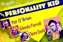 The Personality Kid is a 1934 American drama film directed by Alan Crosland, starring Pat O'Brien and Glenda Farrell. The film was based on a story by Gene Towne and C. Graham Baker. It was released by Warner Bros. on July 7, 1934.[1][2] A young prizefighter's success corrupts him and leads him to neglect his wife.