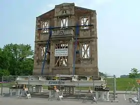 Today only two remaining historical structures remain. The first is the decorated front facade of the Heigold House, which originated in the former Ohio Street neighborhood's Marion Street (present location of the Waterfront Botanical Gardens). Secondly, the Paget House, the last remaining of the riverfront mansions along Fulton Street. Both are listed on the National Register of Historic Places. The Heigold facade was moved to a roundabout on Frankfort Avenue near River Road, while the fate of the historic Paget House remains uncertain, but remains across River Road on the River Park Place development property.