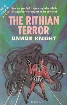 The Rithian Terror (also known as Double Meaning) is a science fiction novel by American writer Damon Knight. The story is a psychological thriller that follows an Earth security officer in the future who is racing against time to locate an alien spy. First published in 1953, this is one of the first books to feature a surveillance drone.
