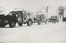 From September 1944 through February 1945, the Rochambelles picked up wounded soldiers in the rain and mud of Lorraine and through the bitter winter in Alsace, enduring the same combat conditions as the soldiers. The division was sent to rest and recuperate in the Loire Valley in March, then called back to action in mid-April as the Allied armies traversed Germany. One Rochambelle died in a Jeep accident near Berchtesgaden.[3]