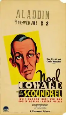 The Scoundrel is a 1935 American drama film directed by Ben Hecht and Charles MacArthur, and starring Noël Coward, Julie Haydon, Stanley Ridges, Rosita Moreno and Lionel Stander. It was Coward's film debut, aside from a bit role in a silent film. It deals with supernatural redemption in a way rather similar to Ferenc Molnár's Liliom, and drew inspiration from the life of publisher Horace Liveright, who had died in September 1933.