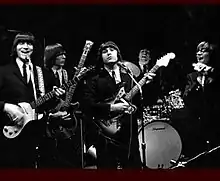 The Shags were founded in West Haven, Connecticut in the summer of 1963 by schoolmates Tom Violante (stage name Tom Roberts) and Carl Augusto (stage name Carl Donnel).[1][2] Like most members of their generation, the future members of the Shags had grown up listening to rock & roll. Augusto, had played lead guitar (and sometimes sang) and another future member of the Shags, Johnny Tangredi, played drums in a local, mostly instrumental surf rock band called the Deltons.[3] But, sensing the rapidly approaching British invasion, and now highly under its influence, Augusto and Violante wanted to form a new band that would reflect what they perceived to be the next big thing.[1][3]