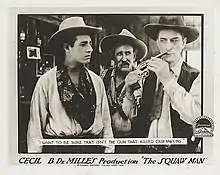 The Squaw Man is a 1918 American silent Western film directed by Cecil B. DeMille.[1] It is a remake of DeMille's 1914 film of the same name, which is based upon a 1905 play by Edwin Milton Royle. The film was reportedly[2] made as an experiment to prove DeMille's theory that a good film is based on a good story. It cost $40,000 to make and grossed $350,000.[2] It would be remade again by DeMille in 1931. The 1918 The Squaw Man is a lost film with only the last reel extant.[1]